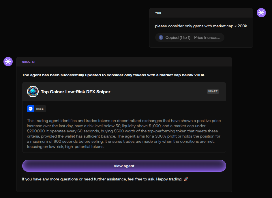 * **Monitor Regularly**: Even though your agent is automated, regular monitoring helps you catch any unexpected behavior or external market events that may affect your strategy.